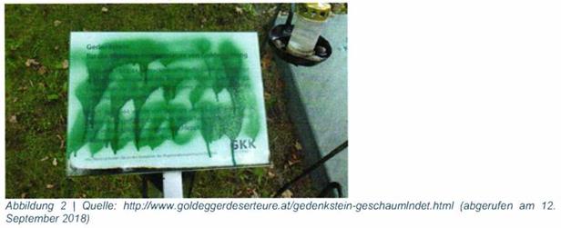 [2] http://www.goldeggerdeserteure.at/aedenkstein-geschaumlndet.html. abgerufen am 12. September 2018; für den TV-Beitrag siehe auch: https://www.youtube.com/watch?v=71BVqNzTqak, abgerufen am 12. September 2018