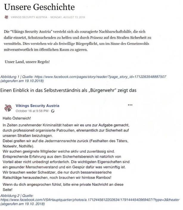 In den sozialen Medien wird derzeit zu einer „Patrouille" einer sog. „Bürgerwehr" mit dem Namen „Vikings Security Austria" am 3. November 2018 in Linz aufgerufen.