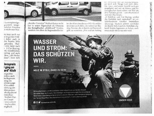 Auch das Verteidigungsministerium hat bereits im Wochenblick inseriert, wie folgendes Bild zeigt:
