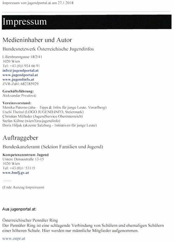 Tatsachen: Auf einer vom Bundeskanzleramt in Auftrag gegebenen Internet-Seite (s. Anlage), „jugendportal.at“, wird zum ÖPR folgendes gesagt: „Der Pennäler Ring ist eine schlagende Verbindung von Schülern und ehemaligen Schülern einer höheren Schule. Hier werden nur männliche Mitglieder aufgenommen.“ Freundlicherweise wird gleich der link zur ÖPR-Seite mitgeliefert. Dort wiederum, erfährt man: „Eine Mensur ... zu fechten heißt seinen Mann zu stehen.“ (s. Anlage). Die Mensur wird auch detailliert bis zu den Sekundanten beschrieben, und als faszinierend dargestellt. Auch auf den Internet-Seiten anderer Pennäler-Vereinigungen wird die Mensur freudig und ausführlich beschrieben. Zum Beispiel auf der Seite der „p.c.B! Tauriska zu Baden“, Die meisten - wenn nicht alle - Pennäler-Burschenschaften verweisen auf die Linzer Paukordnung, welche wiederum in den „Vorbestimmungen“ das „Waidhofner Abkommen“ als für die Beteiligten gültig erklärt. Dieses „Waidhofner Abkommen“ konstatiert bei jüdischen Studenten „Ehrlosigkeit und Charakterlosigkeit".