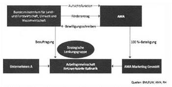Das Ministerium war somit selbst Förderwerber und Begünstigter der Förderung. Darüber hinaus war der weisungsgebundenen AMA die Bewilligung für die Förderung vorbehalten. Die AMA bewilligte das Projekt im April 2016. Sodann beauftragte das Bundesministerium die Arbeitsgemeinschaft Netzwerkstelle Kulinarik, bestehend aus der AMA Marketing GmbH - einer 100 %-Tochter der AMA - und einem weiteren Unternehmen (A)[1].