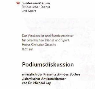 Der Vizekanzler und FPÖ-Parteiobmann, Heinz-Christian Strache, veranstaltet am 13. Februar 2019 eine Podiumsdiskussion „anlässlich der Präsentation des Buches ,Islamischer Antisemitismus' von Dr. Michael Ley". Zu dieser Veranstaltung lädt FPÖ-Vizekanzler Strache neben dem Autor eine ganze Reihe von Persönlichkeiten, die fragwürdige Kontakte pflegen.