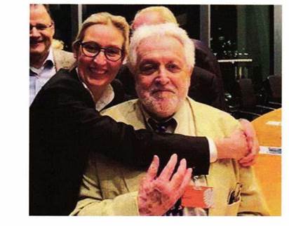 Ein weiter FPÖ-Gast, Henryk M. Broder, sucht offensichtlich die Nähe zur AfD und der AfD- Fraktionsvorsitzenden Alice Weidel. Die AfD wird wegen "völkischen, muslimfeindlichen und fremdenfeindlichen'' Tendenzen ihrer FunktionärInnen vom deutschen Verfassungsschutz als „Prüffall" geführt, Teile der AfD werden sogar bereits nachrichtendienstlich observiert.[6]