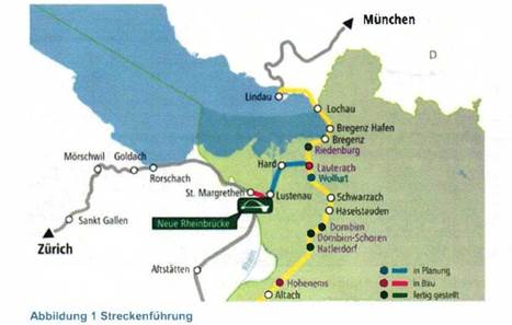 Die Metropolen München und Zürich liegen gut 300 Kilometer voneinander entfernt, die Fahrt mit der Eisenbahn dauert derzeit aber mehr als vier Stunden und ist damit deutlich länger als die Fahrzeiten auf der Straße oder im Luftverkehr. Kein Wunder also, dass der Straßenverkehr auf dieser Strecke stark zunimmt, was vor allem die Region des Vorarlberger Unterlandes stark belastet. An der SchlüsselsteIle (Pfändertunnel) liegen die Wachstumsraten bei mehr als 3% p.a. (https://vorarlberg.orf.at/news/stories/2875968/).
