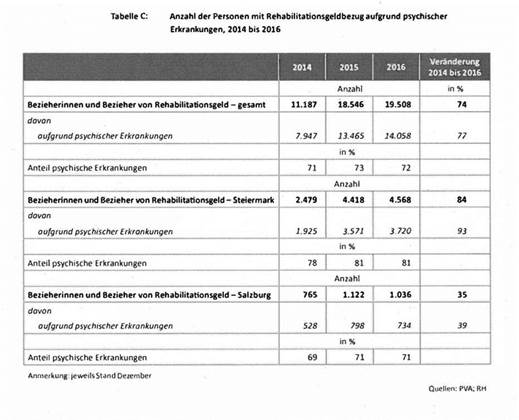 2015 kam die OECD bereits zu einem ähnlichen Ergebnis - allerdings hatte dies damals offenbar keine Konsequenzen. Bislang gibt es keine bundesweite Angebotsplanung, obwohl die Bedeutung psychischer Erkrankungen wächst. Wenn diese nicht - oder zu spät - behandelt werden, zieht dies hohe Folgekosten nach sich. Denn es wirkt sich auf die Invaliditätspensionen und das Rehabilitationsgeld infolge psychischer Erkrankungen aus. Von 2014 bis 2016 sind dessen BezieherInnen um 74 Prozent angestiegen, so die Zahlen des Rechnungshofes.