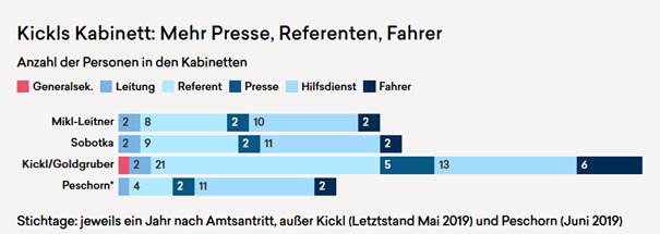 Das Online-Medium „Addendum“ berichtete am 20. Juni 2019 unter dem Titel „Kickls Kabinett: Doppelt so groß wie das seiner Vorgänger“ (siehe: https://www.addendum.org/politometer/kategorie/verwaltung/kickls-kabinett/) über die angebliche Größe des Kabinetts von Herbert Kickl. Dazu wurde folgende Grafik veröffentlicht: