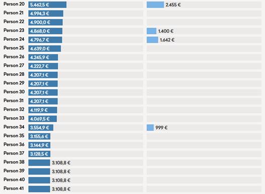 5. Wurden „Addendum“ die Lohnzettel der in der Grafik aufgeführten 46 Mitarbeiter des Kabinetts bzw. Generalsekretariats mit den exakten Bruttogehältern des Monats Mai übermittelt?
