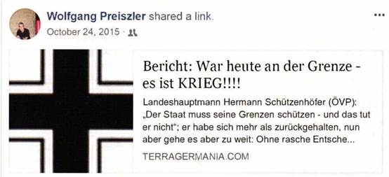 Interessant erscheint in dem Zusammenhang auch die Tatsache, dass Preiszler vom FPÖ- Niederösterreich-Parteiobmann und Nationalratsabgeordneten Christian Höbart, der immer wieder mit rechtsextremen Mitteilung auffällt, auf dessen Facebook-Seite als jemand gelobt wird, der "in meiner Mannschaft” ist.