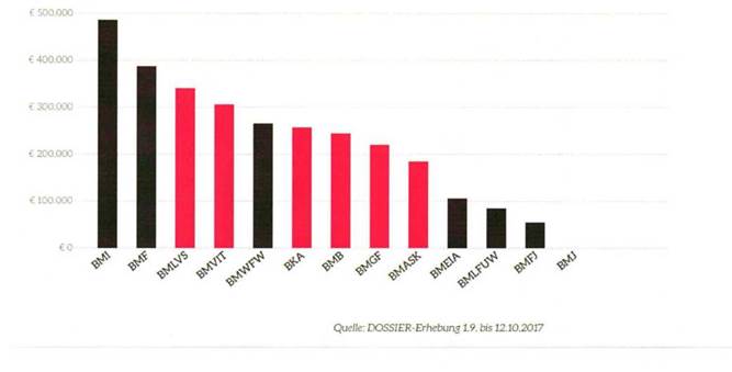 Die Rechercheplattform Dossier hat während des Wahlkampfs 2017 die Ausgaben der Bundesministerien für Zeitungs- und Zeitschrifteninserate beobachtet. Das Resultat: „Österreichs Bundesregierung schaltete mehr Inserate als die wahlwerbenden Parteien zusammen.“ (https://www.dossier.at/dossiers/inserate/das-rennen-des-wolfgang-sobotka/)