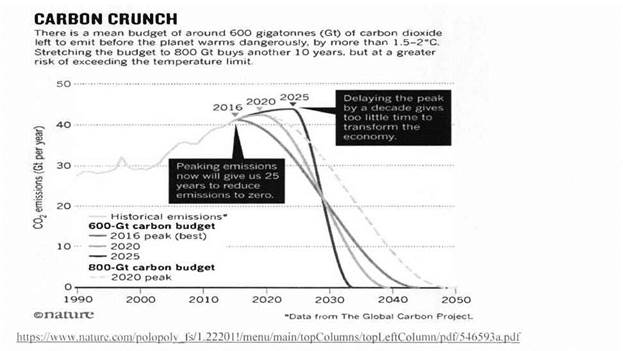 Der renommierte Klimafolgenforscher Stefan Rahmstorf hält in der Publikation „Nature“ vom Juni 2017 fest, dass uns ab jetzt noch 2 Jahre bleiben, um das 2-Grad Ziel zu erreichen und uns vor einer Klimakatastrophe zu bewahren. Bis 2040 müssen die Treibhausgasemissionen auf Null reduziert werden: