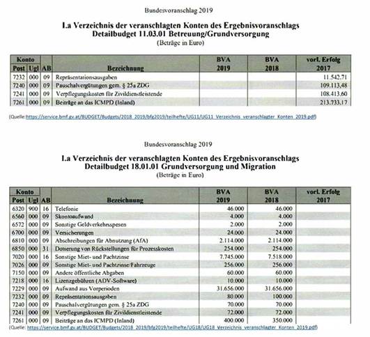 veranschlagten Mittel für das ICMPD in den Jahren 2018 (EUR 350.000) und