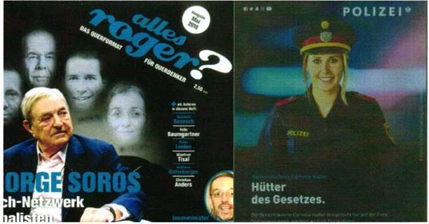 In der aktuellen Ausgabe schießt sich das Medium auf George Soros, den „Sohn jüdischer Eltern", ein. Das Medium spielt auf abstoßende Weise mit antisemitischen Klischees, etwa wenn es Soros als „Paradebeispiel eines gierigen Hedgefondsmangers" und „Mega-Spekulant" charakterisiert. Zudem sei Soros „das Liebkind mächtiger Kreise wie der Rothschilds". Da ist es naheliegend, dass es Soros gelungen ist, ein „'metastasenartiges Netzwerk' [...] auf der ganzen Welt [zu] errichten." Bei diesem perfiden Plan wird der „Lenker der Masseneinwanderung", George Soros, von einer Vielzahl österreichischer Politiker/innen unterstützt. Zu den Verdächtigen zählen Bundeskanzler Sebastian Kurz (ÖVP), Bundeskanzler a.D. Erhard Busek (ÖVP), KO Christian Kern (SPÖ) oder Bundespräsident Alexander Van der Bellen. Quasi zum Abrunden verunglimpft das Medium NGOs und andere unliebsame zivilgesellschaftliche Akteure, wie Amnesty International und Ärzte ohne Grenzen oder die „Abtreibungsorganisation" Planned Parenthood.