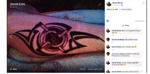 (Quelle: Facebook. Ein Tattoo, das ans Hakenkreuz erinnert) |