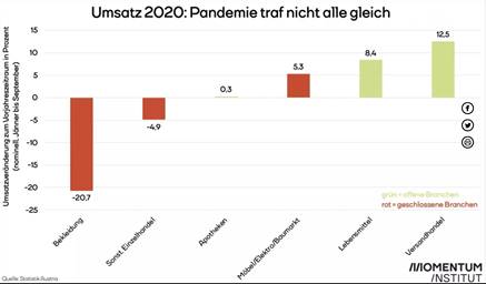 Grafik Unterschiedlichste Umsatzveränderungen im Krisenjahr: