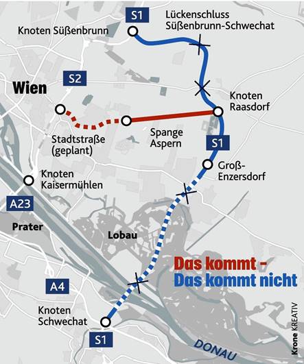 Am 1.12.2021 verkündete die Verkehrsministerin das aus ihrer Sicht endgültige Aus der Fertigstellung der „S 1 Wiener Außenring Schnellstraße“. Jahrzehnte Vorarbeit und an die 150 Millionen Euro wurde mit einer kurzen Pressekonferenz in den Sand gesetzt. Gestoppt wurde nicht nur der Lobautunnel, sondern auch die Schnellstraße von Raasdorf (Niederösterreich) nach Süßenbrunn. Einzig die Stadtstraße und Spange Aspern, die auf den Raasdorfer Feldern praktisch im „Nichts“ endet, dürfen errichtet werden. Für den Wiener Bürgermeister Michale Ludwig „eine Pflanzerei“