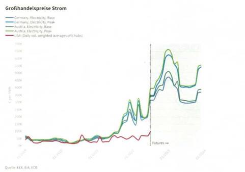 In Europa ist der Großhandelspreis für Strom um mehr als 400 Prozent höher als in den USA, beim Gas liegt Europa mittlerweile um fast 1.000 Prozent höher.[1] Diesem Preisdruck kann kein Unternehmen standhalten, Europa verliert massiv an Wettbewerbsfähigkeit. Die ersten Unternehmen sind bereits gezwungen, Teile ihrer Produktion stillzulegen oder ganz aufzugeben. Er kürzlich wurde der Fall eines weltweit agierenden Vorzeigeunternehmens bekannt, das an einem Standort in Österreich aufgrund der hohen Energiepreise die Produktion zurückfahren musste. Bleiben die Preise so hoch, werden in den nächsten Monaten hunderte andere Unternehmen in Europa folgen. Ist eine Produktion einmal ins Ausland verlagert – etwa in die USA –, kommt sie so schnell nicht mehr zurück.