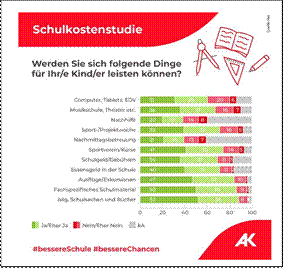 Die Schulkostenstudie zeigt, dass Jugendliche vielfach von der Teuerung belastet werden, sie spüren Einsparungen deutlicher, werden weniger an Bildungs- und Freizeitangeboten teilhaben können und oftmals auch neben ihrer Schule zu arbeiten beginnen, um das Familienbudget aufzubessern. Bisherige Unterstützungsmöglichkeiten beispielsweise für die Teilnahme an mehrtägigen Schulveranstaltungen greifen zu kurz. Sie sind ausschließlich für Schulveranstaltungen vorgesehen und lassen den Freizeitbereich außen vor. Darüber hinaus werden diese bestehenden Möglichkeiten von den Betroffenen oftmals nicht genutzt, da sie nicht anonym sind und mit Stigmatisierung einhergehen können. Dem kann vorgebeugt werden, wenn diese Unterstützung zentral beispielsweise von den Bildungsdirektionen gewährt wird und neben Schulveranstaltungen auf für Angebote der kulturellen Bildung und des Sports genutzt werden kann.