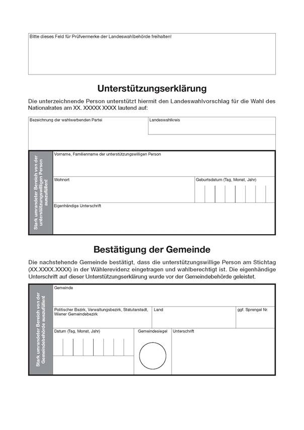 · Wegfall der Möglichkeit einer gerichtlichen oder notariellen Beglaubigung auf Unterstützungserklärungen bei Nationalratswahlen und Bundespräsidentenwahlen, wie dies bereits bei Europawahlen verankert ist (wegen des Erfordernisses des persönlichen Erscheinens einer unterstützungswilligen Person bei der Gemeindebehörde kann auch die Möglichkeit der notariellen oder gerichtlichen Beglaubigung der Unterschrift auf einer Unterstützungserklärung als „totes Recht“ bezeichnet werden) (vgl. Art. 1 Z 44, § 42 Abs. 3 NRWO);