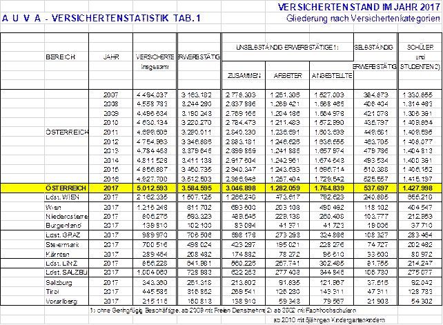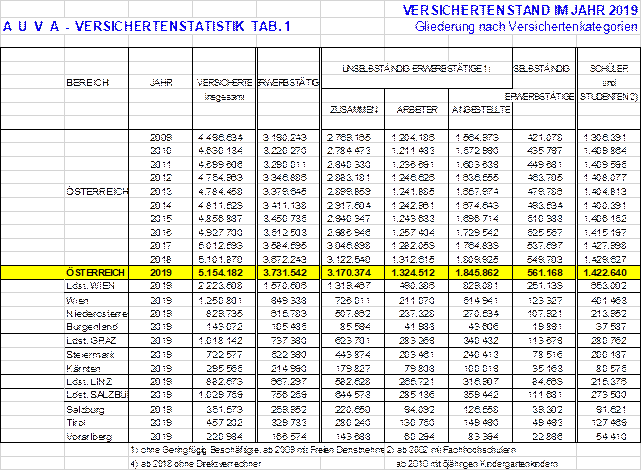 Für die Beantwortung wurden die AUVA Arbeitsunfälle und Berufserkrankungen herangezogen. Anträge von anderen Kostenträgern wurden nicht berücksichtigt.