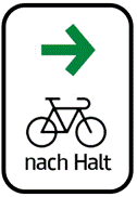 Dieses Zeichen zeigt den Straßenverlauf und wichtige Abzweigungen für den Fahrradverkehr an. Das Zeichen ist 50 m bis 150 m vor der Kreuzung anzubringen. Sie dürfen auch nur auf der linken Straßenseite angebracht werden, wenn dies eine bessere Erkennbarkeit erwarten lässt. Außer den Ortsnamen ist die zusätzliche Angabe von Nummern, Buchstaben, Symbolen und die Bezeichnung der Radroute zulässig. |