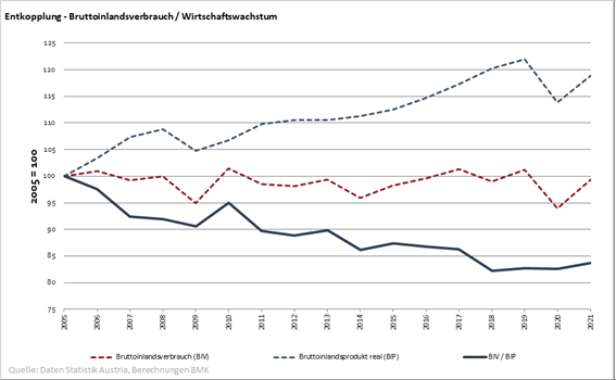 Der Energieverbrauch ist in Österreich in längerfristiger Betrachtung durch stetige Zuwächse gekennzeichnet; erst in der jüngeren Vergangenheit seit 2005 konnte eine weitgehende Stagnation festgestellt werden.
