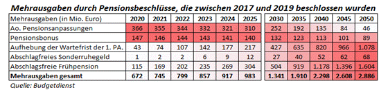 „Budgetdienst zeigt enorme langfristige Kosten der Pensionswahlgeschenke auf