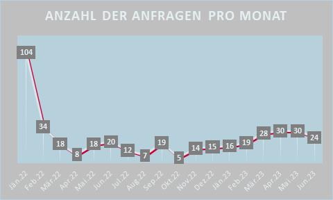 Die Anfragen und Beschwerden verteilen sich wie folgt auf die einzelnen Monate der bisherigen Tätigkeit der Ombudsstelle: