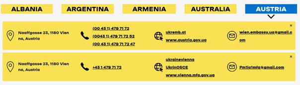 Anders gestaltet sich dies im Falle der „International Legion of Defense of Ukraine“, welche im Zuge des aktuellen Krieges mit Russland ins Leben gerufen wurde. Ihr können laut Homepage Angehörige aller Staaten weltweit beitreten, wobei sich als Kontaktadressen Verweise auf die jeweiligen diplomatischen Vertretungen der Ukraine finden. So auch im Falle Österreichs[1]: