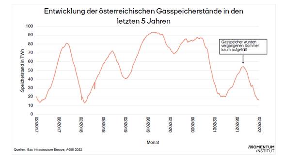 Abbildung 1: Füllstand der österreichischen Gasspeicher[1]