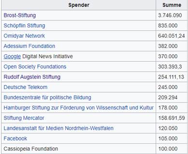 Finanziers von „correctiv“ laut Wikipedia