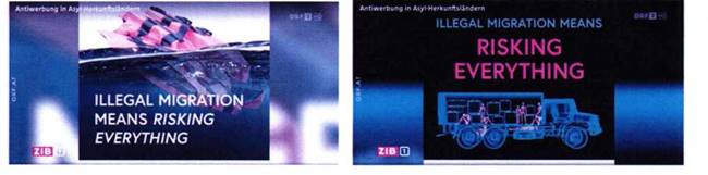 Die ZIB 1 berichtete am 13. Juli 2022 in einem ausführlichen Beitrag über die „Anti-Österreich“- Werbung, die vom Bundesminister für Inneres geschalten wird und Menschen davon abhalten soll, nach Österreich zu flüchten. Dazu werden in Ländern wie Pakistan, Marokko und Tunesien bisher online und künftig laut Bericht auch in Zeitungen teils verstörende Sujets geschalten. Rund 70.000 Euro hat die Kampagne bisher gekostet, dem Beitrag ist zu entnehmen, dass künftig noch deutlich mehr Geld fließen soll.