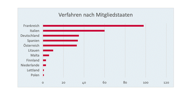 innerhalb der Union den fünften Platz bei den Verfahren nach Mitgliedsstaaten