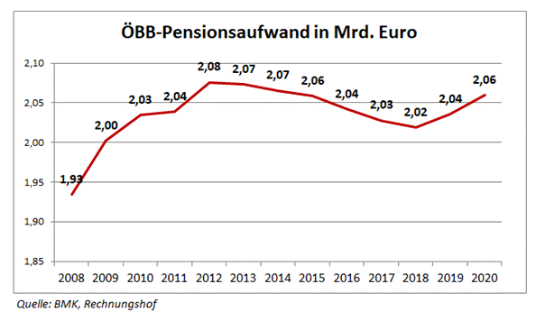 Die Rechnungshofberichte zum ÖBB-Pensionsrecht (Bund 2015/4 und Bund 2018/27) empfahlen dem Ministerium zahlreiche Gesetzesänderungen bezüglich des ÖBB-Pensionsrechtes. Davon setzte das Ministerium aber bisher nur eine von sechs Empfehlungen um. Für fünf Empfehlungen (Einfrieren der Pensionssicherungsbeiträge auf den Wert von 2014, Einfrieren der Nebengebührendurchschnittsätze/-zulagen auf den Wert von 2014, Klarstellung bei der Zuständigkeit des ÖBB-Pensionsrechts, Abschläge für vorzeitige Ruhestandsversetzungen, Reduzierung der Anwartschaften mit Pensionsverlustdeckel) fehlt nach wie vor der Gesetzesentwurf des Ministeriums. Das Ministerium begründet dies regelmäßig damit, dass das alte ÖBB-Pensionssystem ohnehin auslaufen würde. Diese Argumentation ist jedoch nicht nachvollziehbar, da dies erst weit nach 2050 der Fall sein wird. Zudem wird durch die Nicht-Umsetzung der RH-Empfehlungen das ohnehin schon angespannte Bundesbudget auch weiterhin mit vermeidbaren Aufwänden belastet. In Summe handelte es sich ursprünglich um mindestens 1,07 Mrd. Euro Einsparungsvolumen, wovon allerdings aufgrund der anhaltenden Reformverweigerung nur noch maximal 0,56 Mrd. Euro erzielbar sind (Stand: 2018).