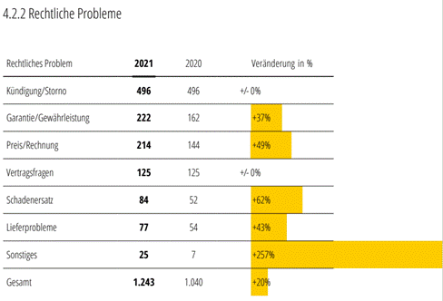 5) Die häufigsten rechtlichen Probleme hatten Verbraucher bei Kündigungen/Storno, Garantie/Gewährleistung, bei Preis oder Rechnung von Waren und bei Vertragsfragen: Warum sind genau diese Sektoren so stark betroffen?