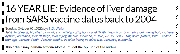 [3] 16 YEAR LIE: Evidence of liver damage from SARS vaccine dates back to 2004 – NaturalNews.com