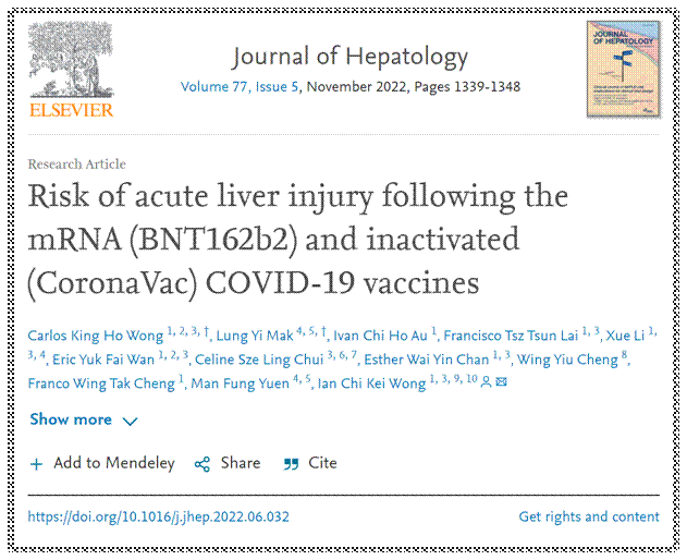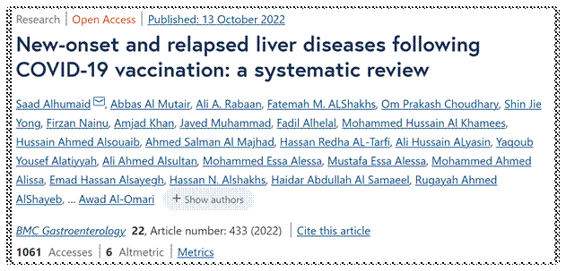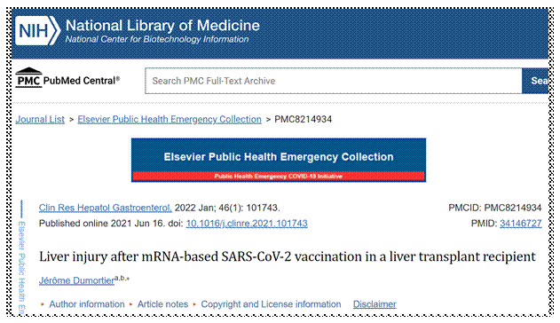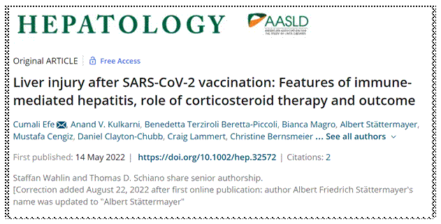 Im Artikel wird kritisiert, dass bereits lange bevor das SARS-CoV2 in Wuhan verbreitert wurde und die neuartigen Impfstoffe gegen Corona eingesetzt wurden, die Kritik an der Technologie mit Spike-Produktion im menschlichen Körper bestand. Trotzdem wurden mit „warp speed” die mRNA-Injektionen entwickelt und breit angewandt. Bei beiden „Medikamenten“ wird der Körper des Empfängers dazu gebracht, die Spike-Proteine selbst herzustellen. Und inzwischen gibt es bereits Berichte über Leberschäden im Zusammenhang mit den Corona-Impfungen auf mRNA-Basis: