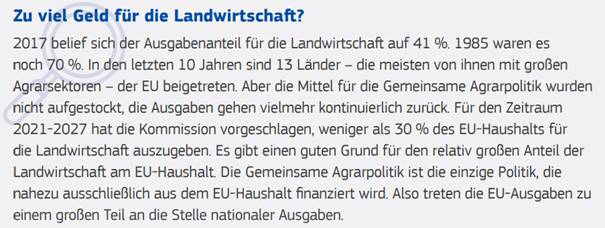 Was diese Abwesenheit für die heimische Landwirtschaft bedeutet, lässt sich in der Broschüre „Der EU-Haushalt auf einen Blick“[3] nachlesen: