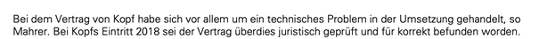 Also auf Grund eines "technischen Problems in der Umsetzung" kam es zu einer Pensionskassenzahlung von jenseits der EUR 250.000. Die Mitglieder dürfen sich glücklich schätzen, dass solche technischen Probleme selten sind. Laut Angaben der Wirtschaftskammer habe man also diese Sonderpensionsregelung 2018 intern geprüft und keine rechtlichen Probleme erkannt.