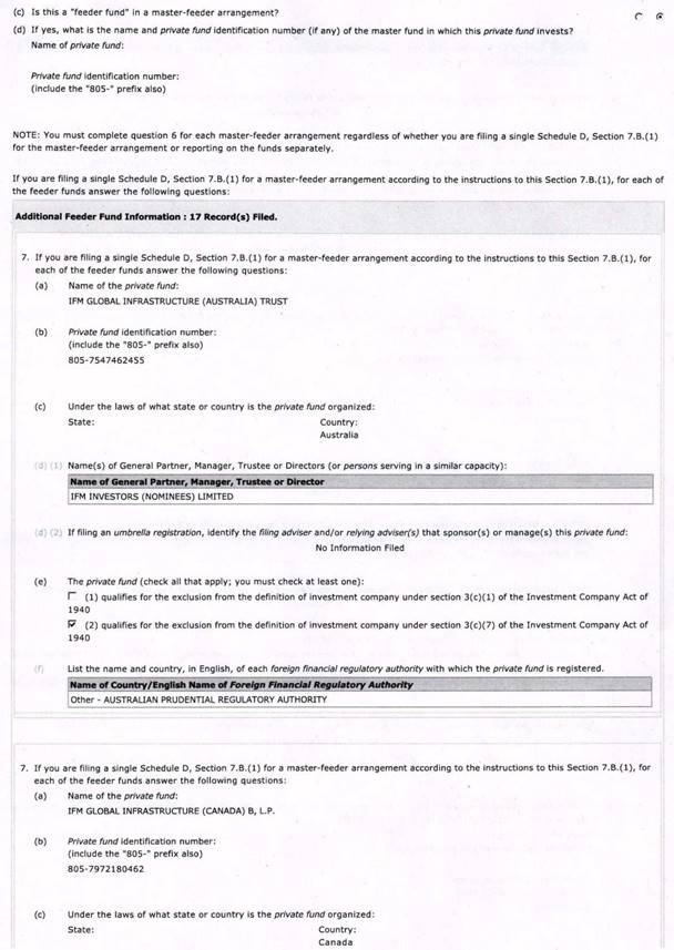 Vorgelegt wird als Beilage ./1 ein Auszug aus dem ADV-Form der SEC (S. 1 sowie 46-61) mit den Angaben zu IFM Investors Pty Limited und zum IFM Global Infrastructure Fund als Master Fund samt seinen 17 Feeder Funds, weiters als Beilage ./2 der „Suchbericht“ aus dem Firmenregister der Cayman Islands zum Feeder Fund IFM Global Infrastructure (Offshore), L.P. Der „Suchbericht“ zum IFM Global Infrastructure Fund, dem Hauptfonds und Großaktionär am Flughafen Wien, wurde bereits bei der ersten Anfrage vorgelegt und wird hier der Einfachheit halber nochmals als Beilage .3/ angeschlossen.
