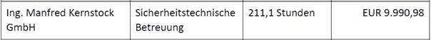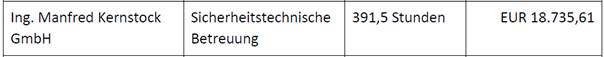 Folgende Leistungen werden durch die Ing. Martin Kernstock ausgelobt:[3]