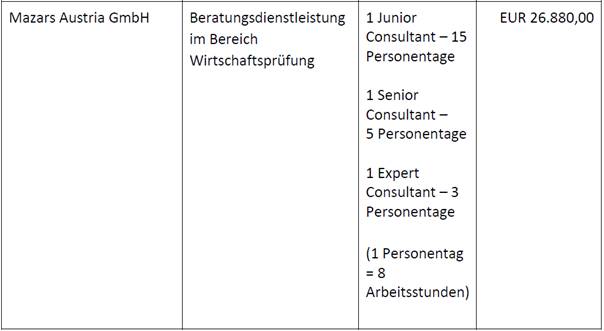 3. Wurde bei der Firma Mazars Austria GmbH die Dienstleistung „Jahresabschlussprüfung“ beauftragt?