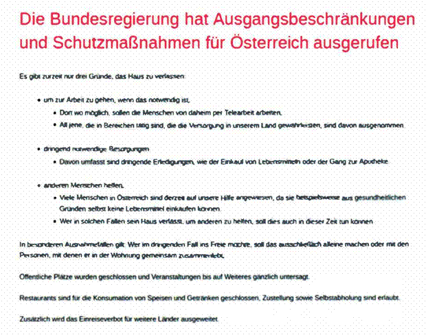 Zum Vergleich - das BMSGPK schreibt zu den Ausnahmen des Betretungsverbotes öffentlicher Plätze auf seiner Homepage (Stand 09.04.2020) folgendes:
