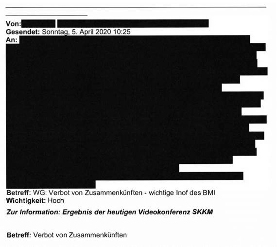 Dass den an der Durchsetzung beteiligten Behörden die Tragweite des Inhalts erst nach und nach bewusst wurde, scheinen Mailkorrespondenzen zu belegen, die am Palmwochenende aus dem Innenministerium in Richtung der Katastrophenstäbe der Länder ergingen.