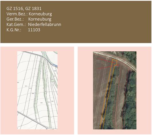 Die Grundstücke (siehe oben) GZ 1516 und GZ 1831 sind auch zu prüfen, so ist zum Beispiel das Grundstück GZ 1831 als öffentlicher Weg gekennzeichnet und als Grünfläche gekennzeichnet, wird aber bewirtschaftet.