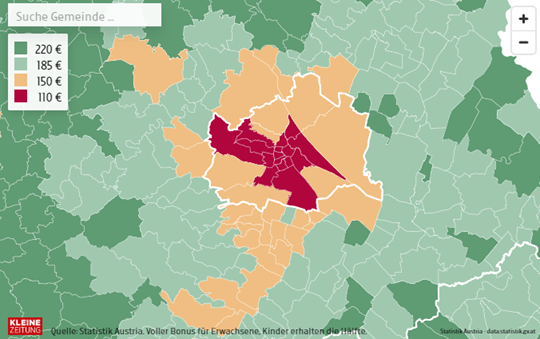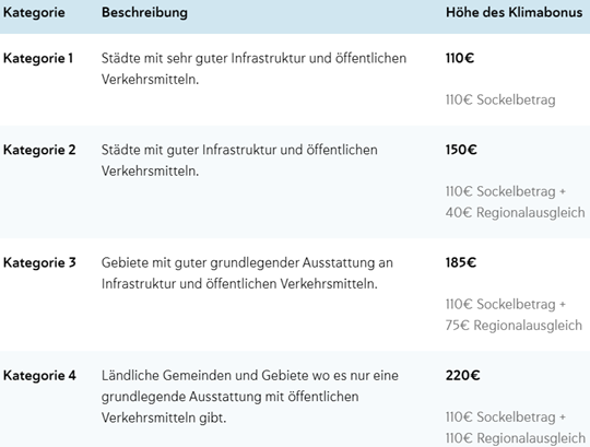 Rein grundsätzlich gilt bei der Auszahlung: Je besser der öffentliche Verkehr und die Infrastruktur, desto niedriger die Auszahlung. Im Gegensatz zum Klimabonus 2022 gibt es nun vier Klimabonus-Kategorien, was abermals dazu führen wird, dass man sich beim Überqueren einer Straße plötzlich in einer höheren Klimabonus-Kategorie-Gegend befindet.