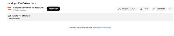 Kommentarfunktion bei Videos auf dem Youtube-Kanal des BMF voreingestellt?
