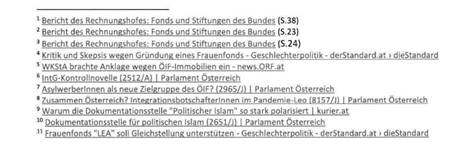 Die Kritik und die beanstandeten Defizite beziehen sich hauptsächlich auf die Nutzung der Finanzmittel, die Vergabe von Aufträgen für Studien, Kurse, Schulungen und ähnliche Aktivitäten sowie die inhaltliche und personelle Ausgestaltung der Bundesfonds. Die öffentliche Kritik und die parlamentarischen Anfragen unsererseits betrifft darüber hinaus auch insbesondere die Dokumentationsstelle Politischer Islam310 und den Frauenfond LEA11.