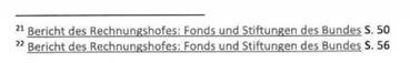 Der Rechnungshof hat zuletzt 2017 einige Fonds und Stiftungen des Bundes untersucht und ebenfalls mehr Transparenz und Klarheit hinsichtlich der Kriterien, nach denen Leistungen erbracht werden,