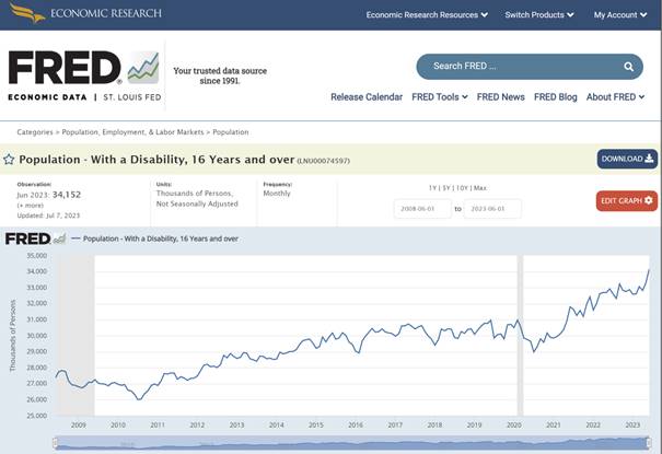 Quelle: Population - With a Disability, 16 Years and over (LNU00074597) | FRED | St. Louis Fed (stlouisfed.org)