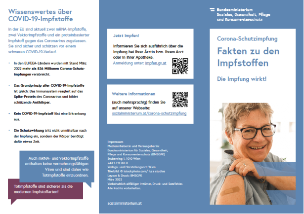 Der Folder behauptet „Kein COVID-19-impfstoff löst eine Erkrankung aus“. Dies ist nachweislich falsch und, dass es falsch ist, war zu dem Veröffentlichungsdatum – März 2022 – bekannt. Es wurde von den Gesundheitsbehörden bereits davor veröffentlicht, dass jeder der verwendeten Covid-Impfstoffe eine oder mehrere Erkrankungen auslösen kann.
